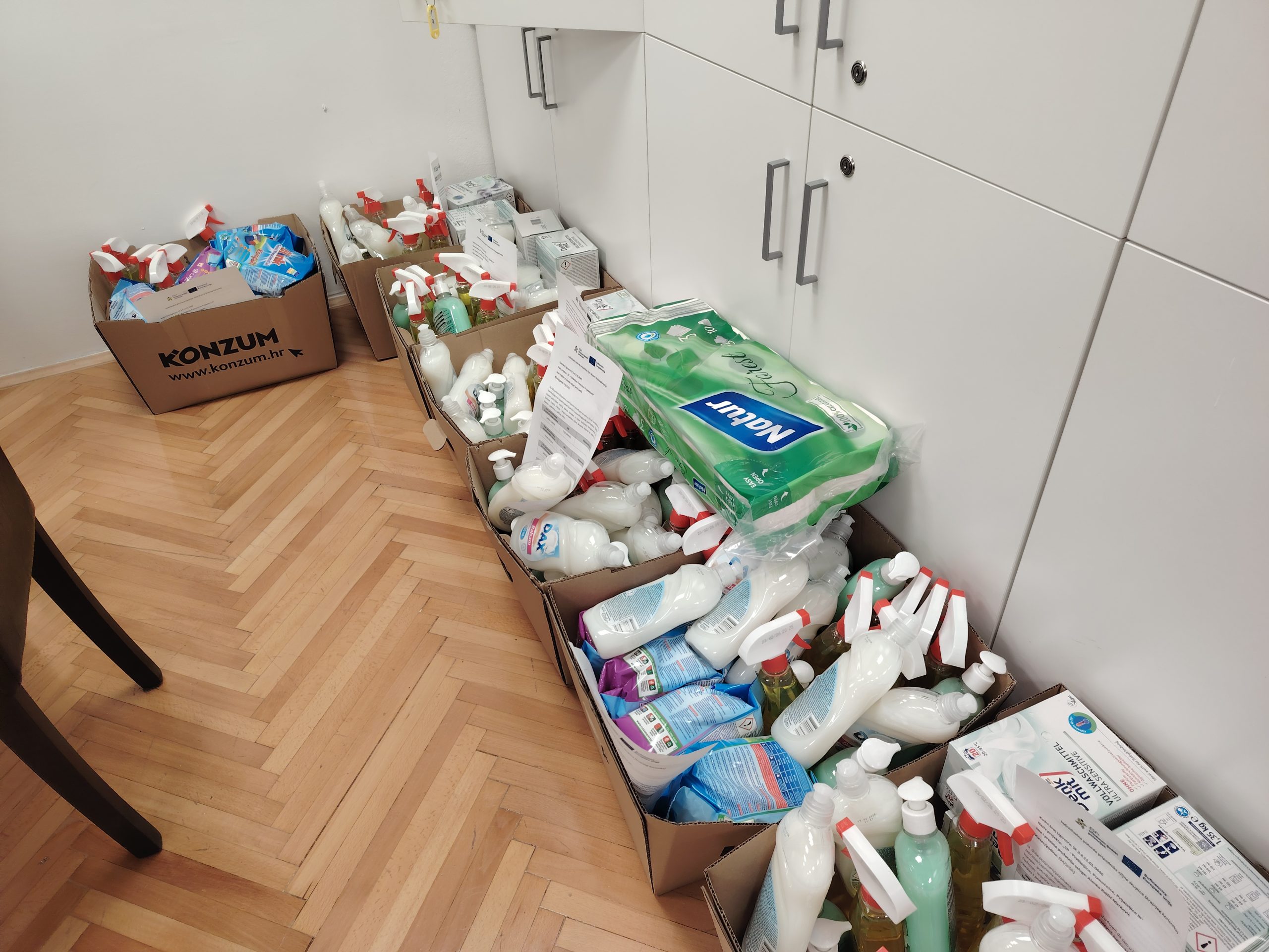 Paketi za travanj 22.04.2026. zaprimljeni su u udrugu. Namijenjeni korisnicima EU projekta „3P – Pratiteljice, Pomoćnice, Prijateljice III“, koji se provodi s ciljem poboljšanja kvalitete života starijih osoba te odraslih osoba s invaliditetom, a sadrže kućanske i osnovne higijenske potrepštine potrebne za svakodnevni život. Podjela paketa odvijat će se do kraja mjeseca, a korisnicima će ih dostaviti gerontodomaćice koje ih redovito obilaze i pružaju im potporu i podršku u njihovim domovima.