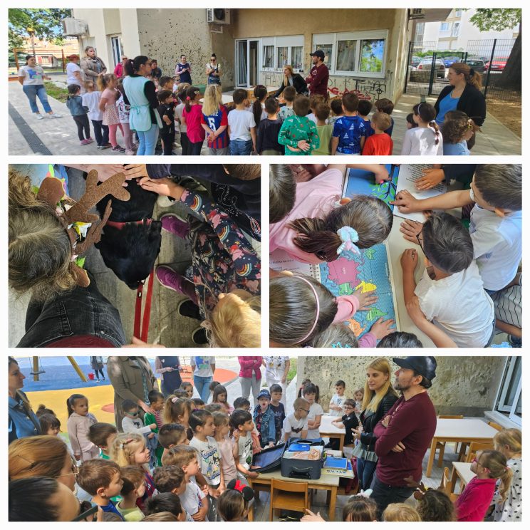 U petak, 9.05.2025. posjetili smo DV Zvončica. Djecu smo na zabavan način upoznali s životom slijepih osoba. Pokazali smo im kako se slijepe osobe kreću👩🦯👨🦯, školuju📚, kuhaju, igraju društvene igre🎲🃏… Djeca su imala priliku isprobati simulacijske naočale te vidjeti kako izgleda školski atlas za slijepu djecu i slikovnica tiskana na brajici i uvečanom tisku te opipati taktilne crteže.