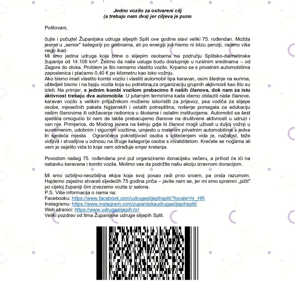 Trenutno prikupljamo financijska sredstva za nabavu vozila koja su neophodna našim članovima u svakodnevnom radu.