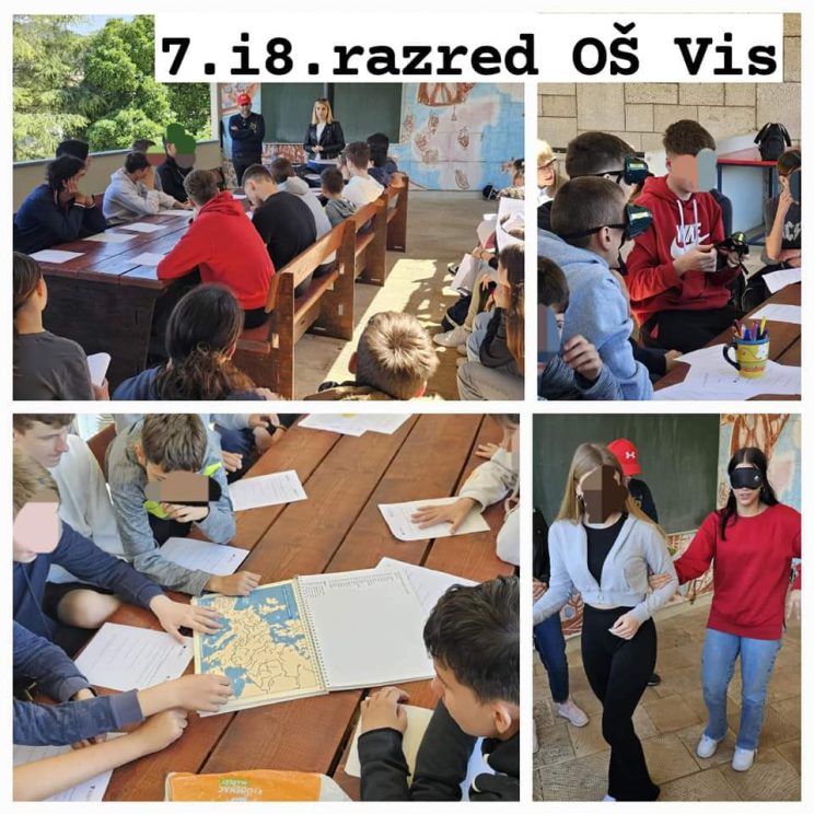 Upoznavanje s našim pogledom na svijet ovog smo tjedna nastavili na otoku Visu provedbom edukativnih radionica za učenike osnovnih školi Vis i Komiža te srednje škole “Antun Matijašević Karamaneo”. Učenici s otoka Visa imali su se priliku pobliže upoznati sa pojmom sljepoće te potrebama i mogućnostima slijepih osoba. Na radionicama im je demonstrirano i kretanje slijepih osoba te neka od pomagala koja koriste. Zahvaljujući simulacijskim naočalama učenici su mogli zaviriti u naš pogled na svijet.